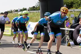 Beim Startblock B waren die Schweizer dominanter. Tomas Ruegge (Solothurn) Benjamin Feer (Solothurn) und Adrian Stucki (Altendorf) haben das Rennen massgeblich bestimmt. Sie haben zahlreiche Attacken gefahren und versuchten immer wieder das Tempo hoch zu halten. Adrian Stucki, welcher den Zielsprint angefahren hatte, bot Tomas und Benjamin eine ideale Vorlage um als erster und zweiter über die Ziellinie zu fahren. Da aber die Netto-Zeit zählte, konnte sich noch ein Franzose "vordrängeln" woraus schlussendlich Rang zwei und drei resultierte.
